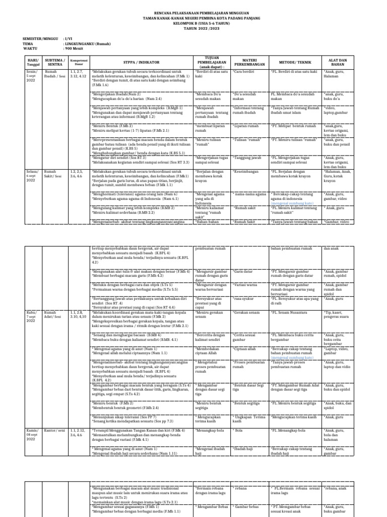 RENCANA PELAKSANAAN PEMBELAJARAN MINGGUAN