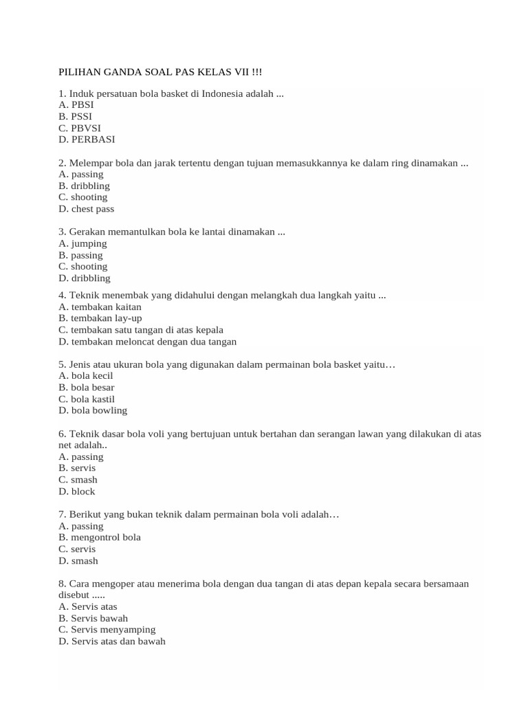 PILIHAN GANDA SOAL PAS KELAS VII !!!