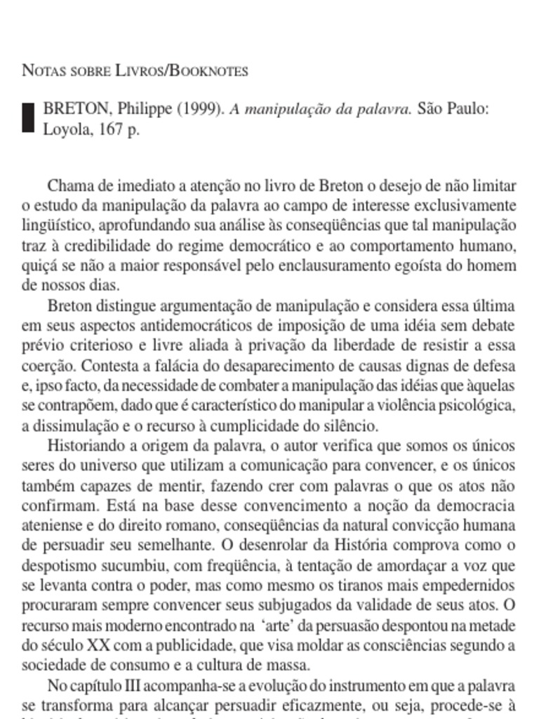 BRETON, Philippe (1999). A manipulação da palavra. São Paulo:
