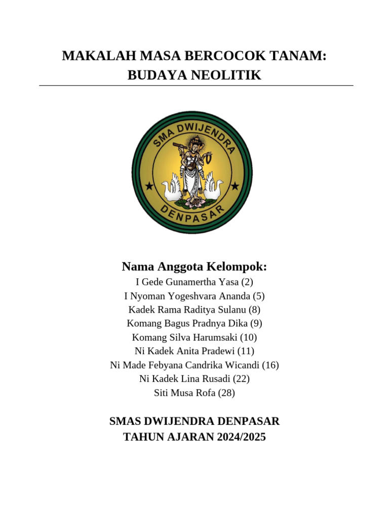 Neolitik" ini dapat diselesaikan tepat pada waktunya. Makalah ini disusun sebagai