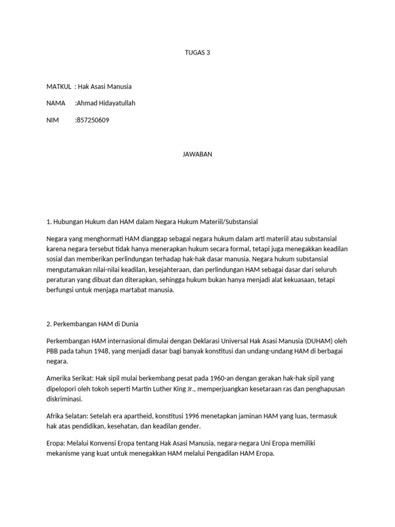 1. Hubungan Hukum dan HAM dalam Negara Hukum Materiil/Substansial
