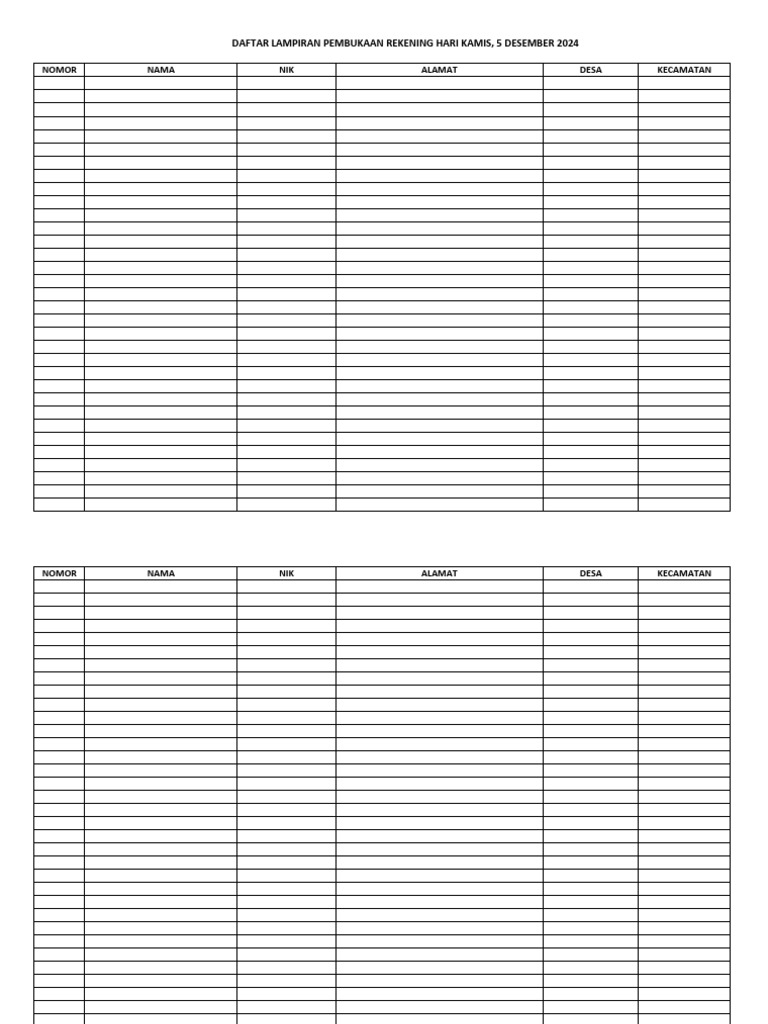 DAFTAR LAMPIRAN PEMBUKAAN REKENING HARI KAMIS, 5 DESEMBER 2024