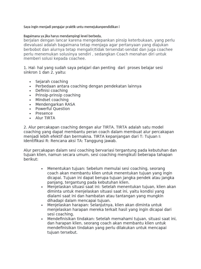 2. Alur percakapan coaching dengan alur TIRTA. TIRTA adalah satu model