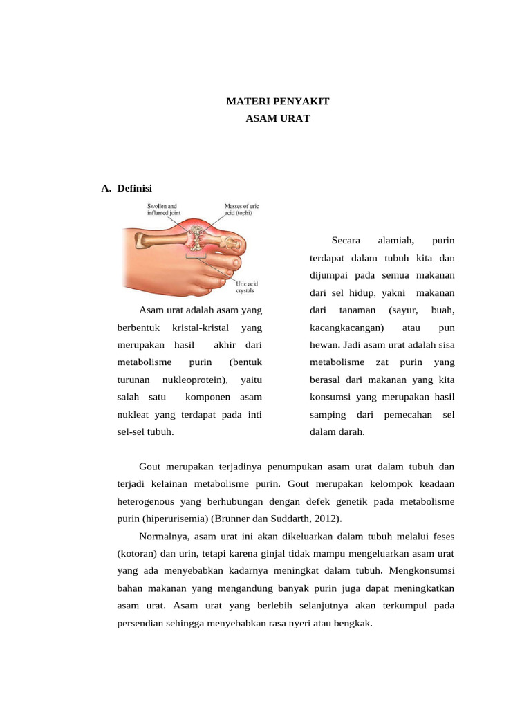 asam urat. Asam urat yang berlebih selanjutnya akan terkumpul pada