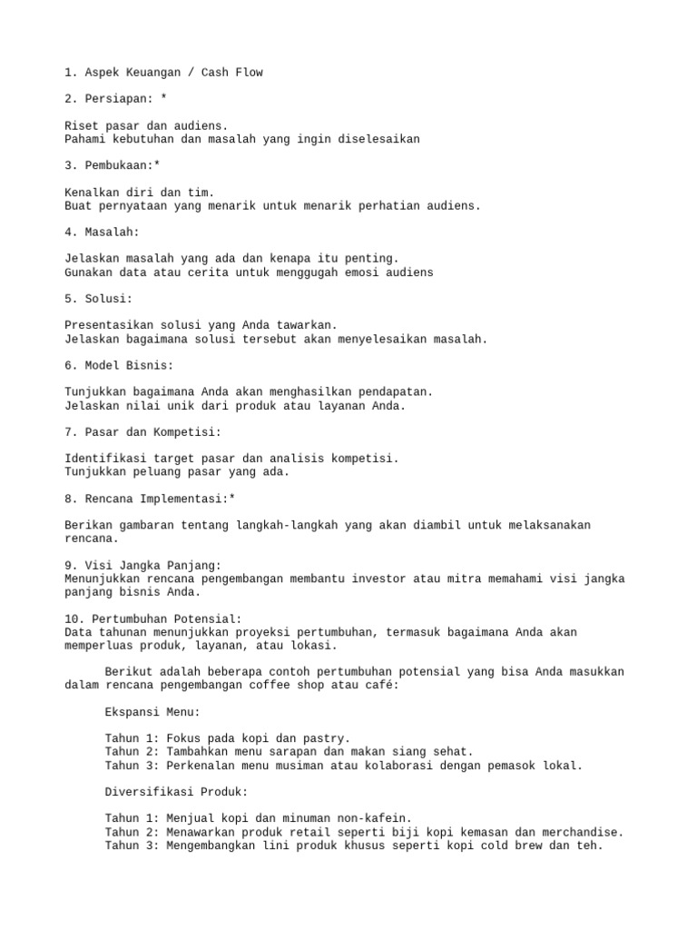 dalam rencana pengembangan coffee shop atau café: