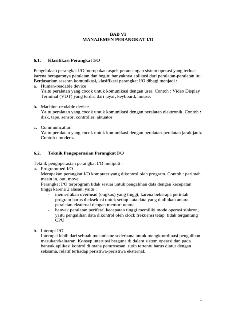 6.1. Klasifikasi Perangkat I/O