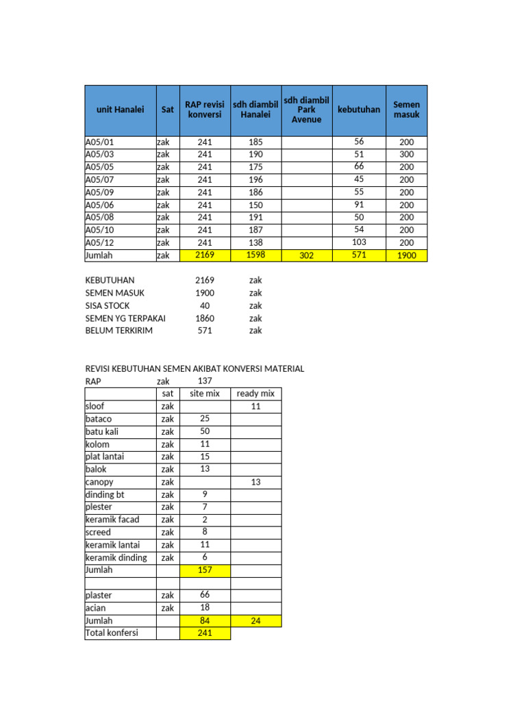 REVISI KEBUTUHAN SEMEN AKIBAT KONVERSI MATERIAL