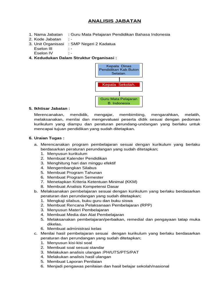 1. Nama Jabatan : Guru Mata Pelajaran Pendidikan Bahasa Indonesia