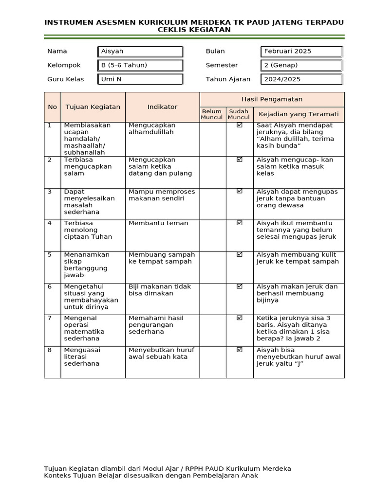 INSTRUMEN ASESMEN KURIKULUM MERDEKA TK PAUD JATENG TERPADU
