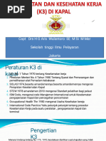 keselamatan. dan kesehatan kerja di kapal antara lain sebagai berikut: UU No. 1 Th. 1970