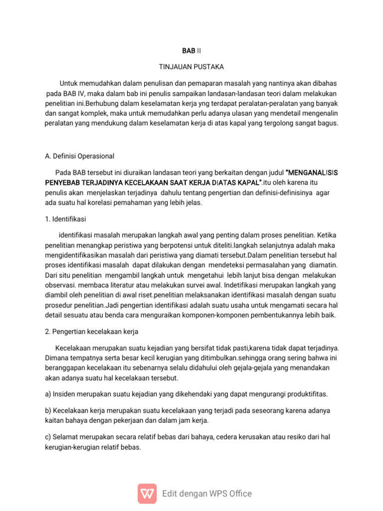 PENYEBAB TERJADINYA KECELAKAAN SAAT KERJA DIATAS KAPAL".itu oleh karena itu