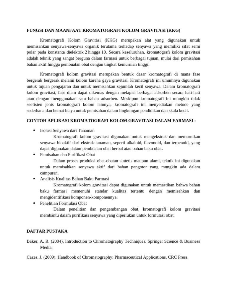 FUNGSI DAN MAANFAAT KROMATOGRAFI KOLOM GRAVITASI (KKG)