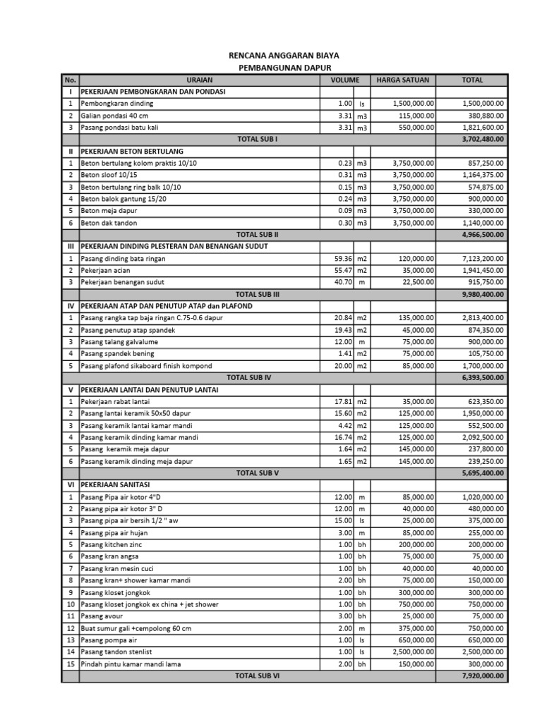 5 Beton meja dapur 0.09 m3 3,750,000.00 330,000.00