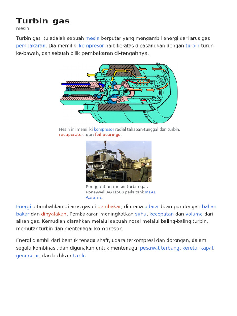 untuk memutar turbin dengan pembakaran internal. Di dalam turbin gas energi