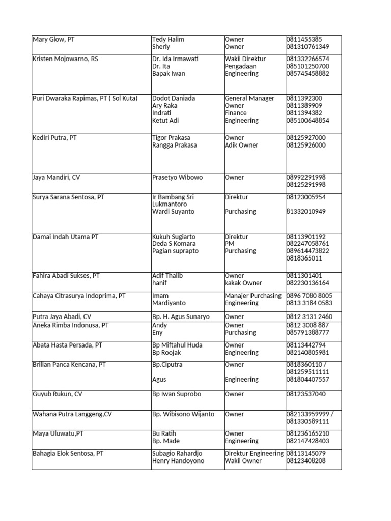 Bahagia Elok Sentosa, PT Subagio Rahardjo Direktur Engineering 08113145079
