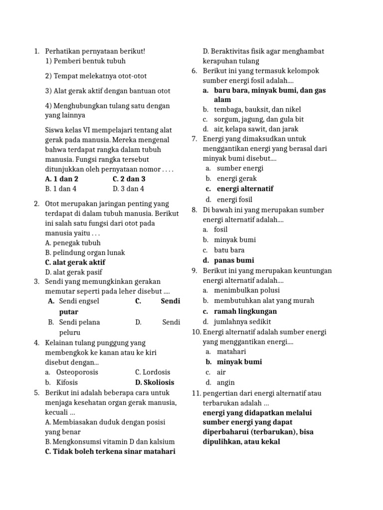 A. penegak tubuh b. minyak bumi
