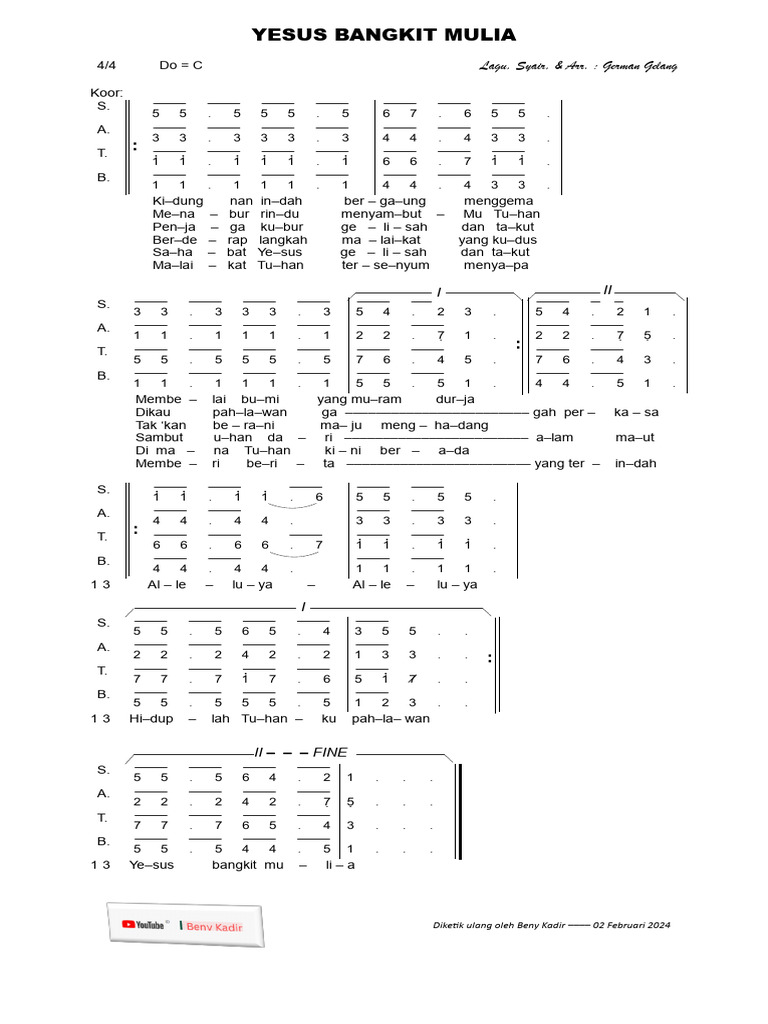 4/4 Do = C Lagu, Syair, & Arr. : German Gelang