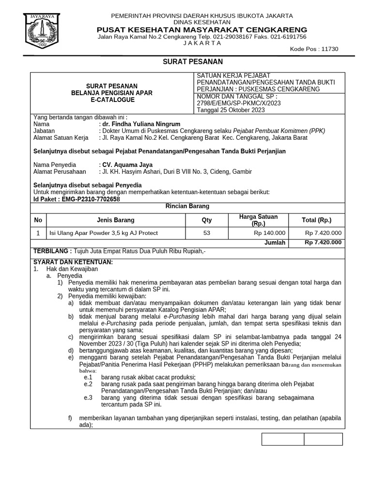 Jabatan : Dokter Umum di Puskesmas Cengkareng selaku Pejabat Pembuat Komitmen (PPK)