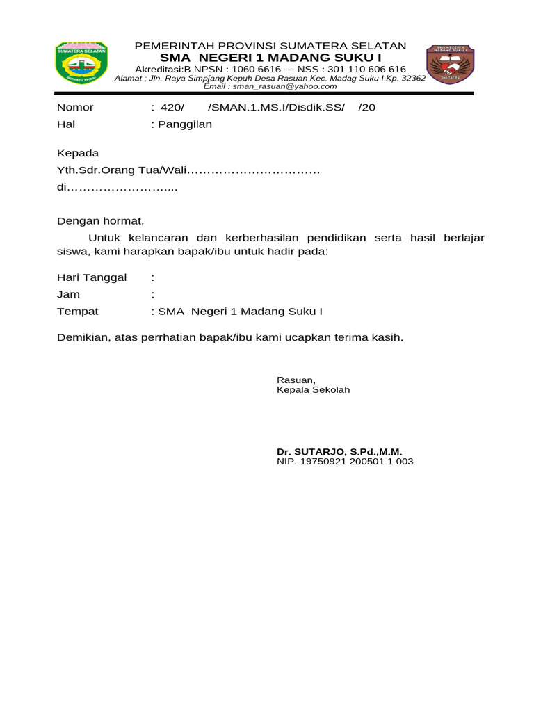 Demikian surat panggilan ini dibuat, atas perrhatian bapak/ibu kami ucapkan