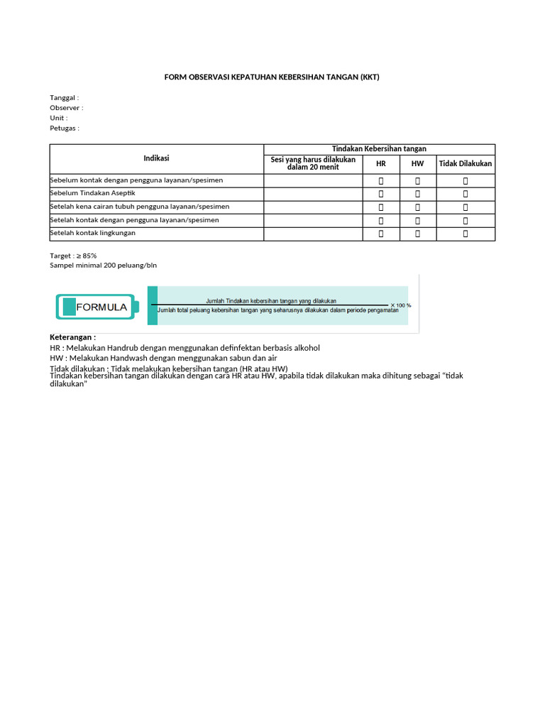 FORM OBSERVASI KEPATUHAN KEBERSIHAN TANGAN (KKT)