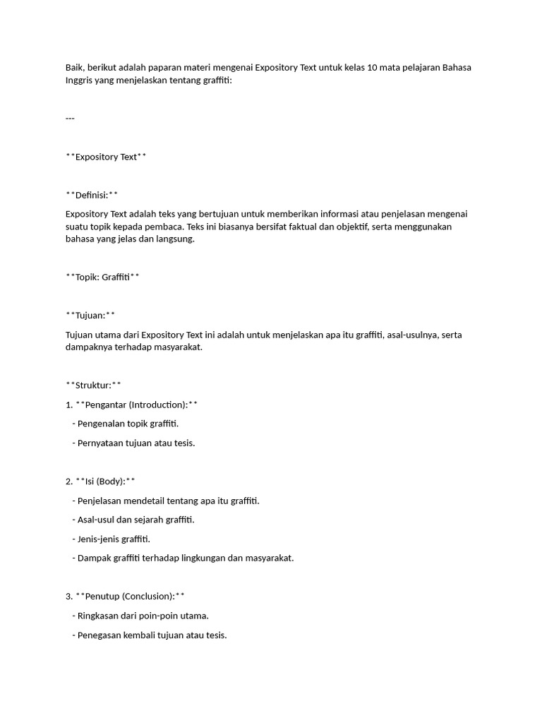 Semoga paparan ini membantu dalam memahami Expository Text tentang graffiti. Apakah ada hal