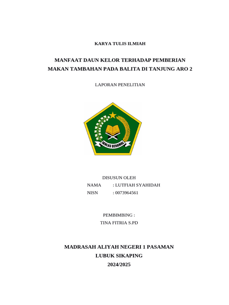 Karya tulis ini ditulis sebagai salah satu syarat kelulusan di MAN 1 Pasaman
