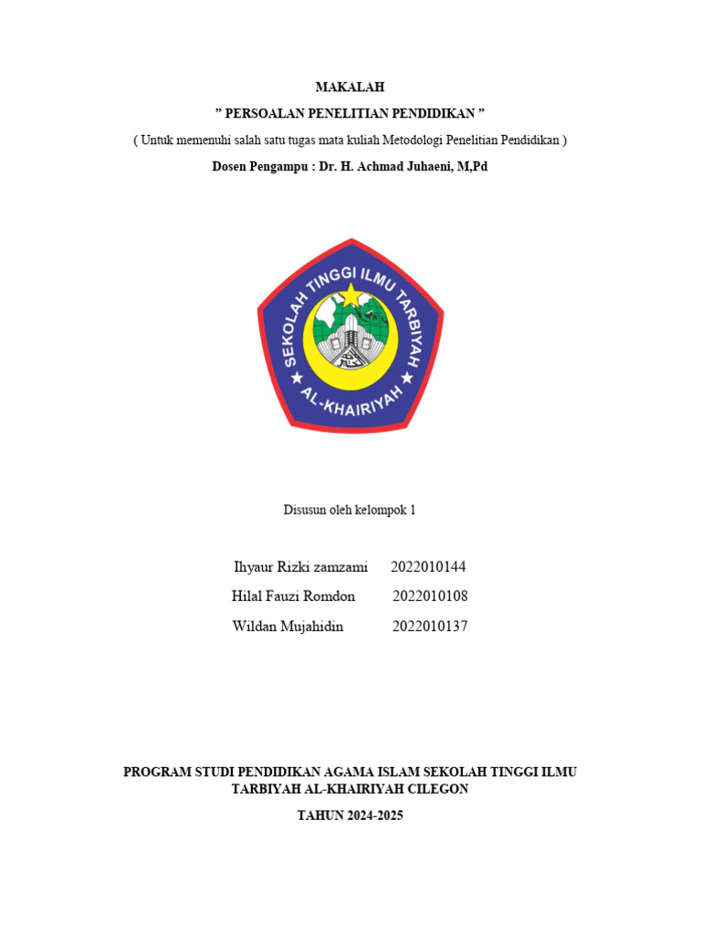 penelitian pendidikan" guna memenuhi tugas mata kuliah Metodologi Penelitian Pendidikan.