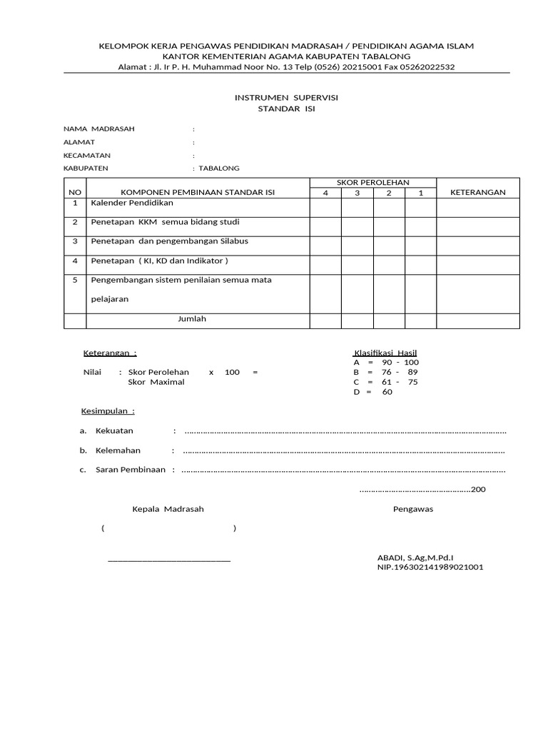 c. Saran Pembinaan : ……………………………………………………………………………………………………………………………..