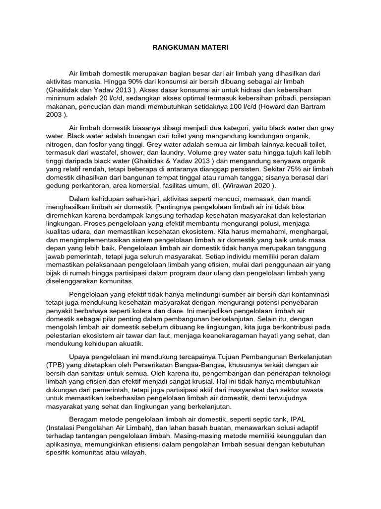 menghasilkan limbah air domestik. Pentingnya pengelolaan limbah air ini tidak bisa
