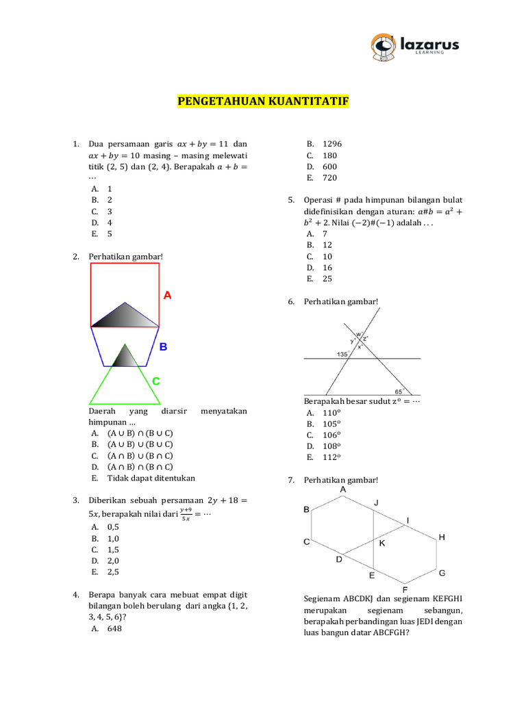 4. Berapa banyak cara mebuat empat digit Segienam ABCDKJ dan segienam KEFGHI