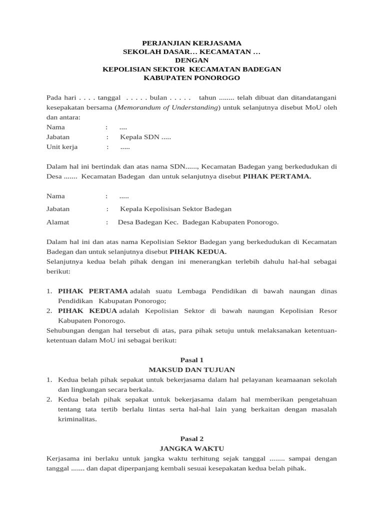2. PIHAK KEDUA adalah Kepolisian Sektor di bawah naungan Kepolisian Resor