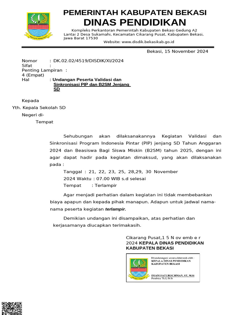Nomor : DK.02.02/4519/DISDIK/XI/2024