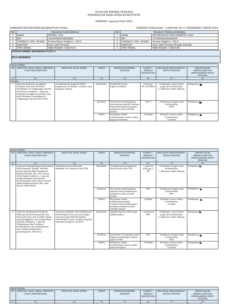 PEMERINTAH PROVINSI KALIMANTAN UTARA PERIODE PENILAIAN: 1 JANUARI SD 31 DESEMBER TAHUN 2023