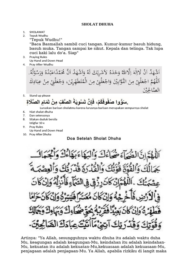 Artinya: "Ya Allah, sesungguhnya waktu dhuha itu adalah waktu duha