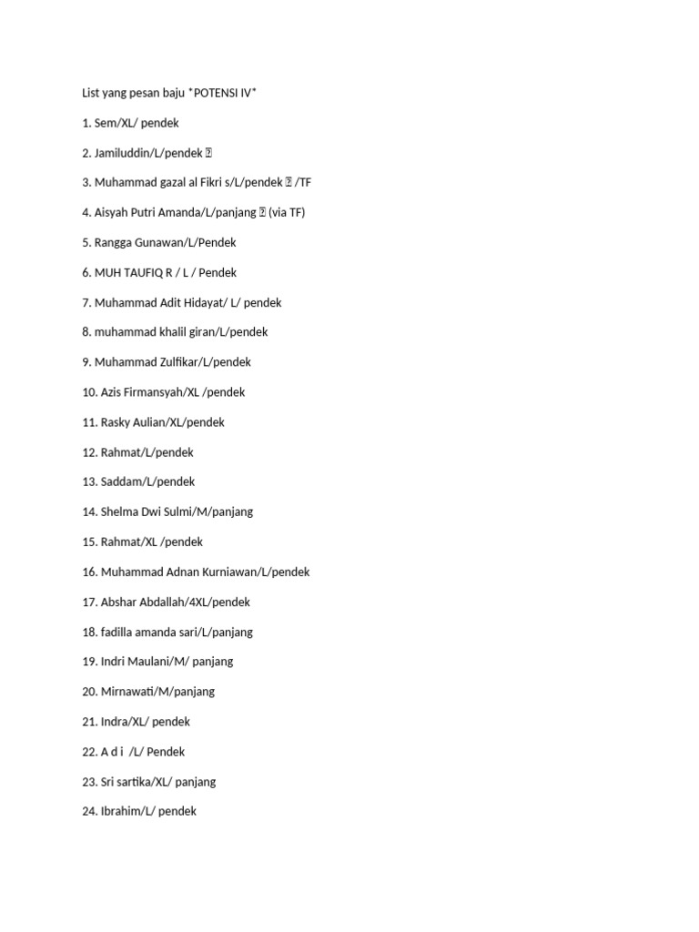 List yang pesan baju *POTENSI IV*