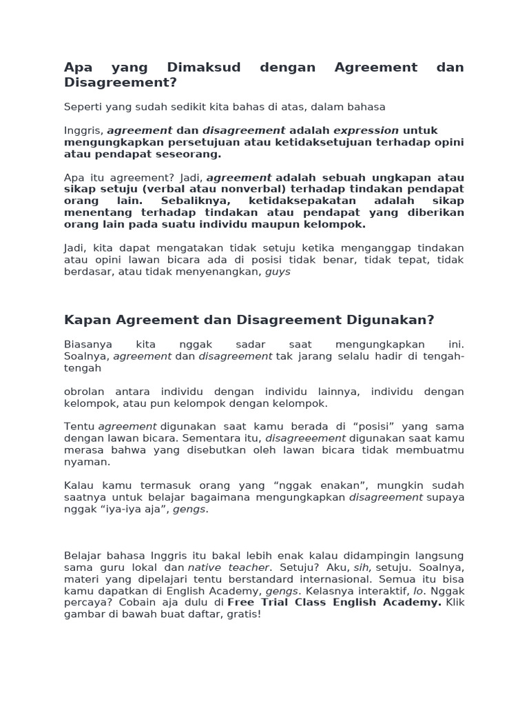 Kapan Agreement dan Disagreement Digunakan?