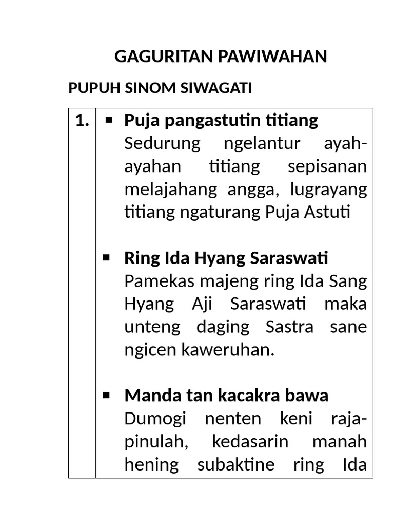 1. Puja pangastutin titiang