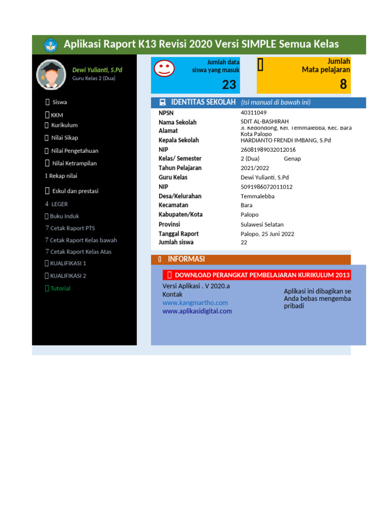mengembangkan isi yang ada dalam aplikasi ini kecuali untuk sheet DEPAN yang merupakan conten privasi dari Admin