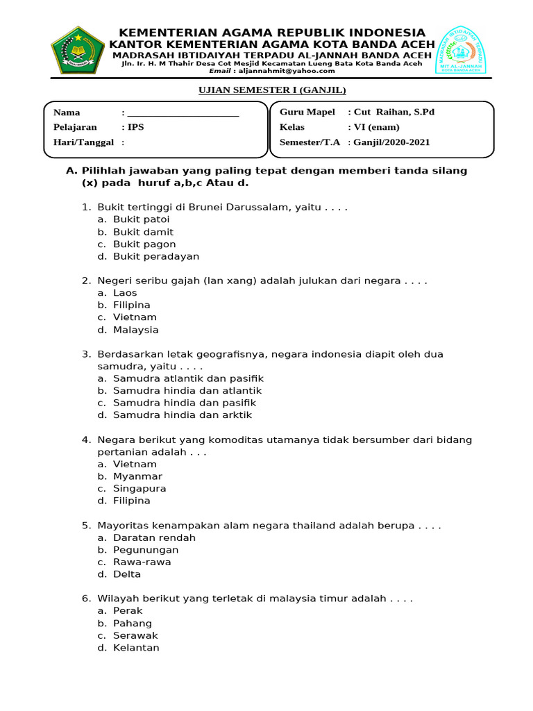 A. Pilihlah jawaban yang paling tepat dengan memberi tanda silang