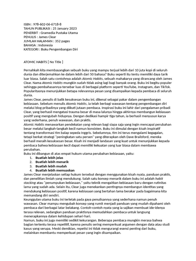 luar biasa. Salah satu contohnya adalah Atomic Habits, sebuah mahakarya yang dirancang oleh James