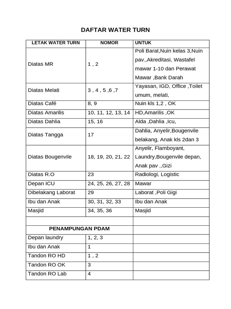 DAFTAR WATER TURN