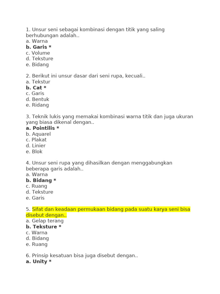 Itu lah Kumpulan Soal Pilihan Ganda Berserta Kunci Jawaban Seni