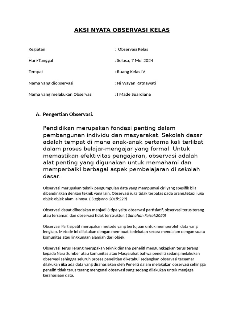 AKSI NYATA OBSERVASI KELAS