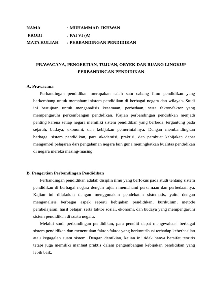 Perbandingan pendidikan merupakan salah satu cabang ilmu pendidikan yang