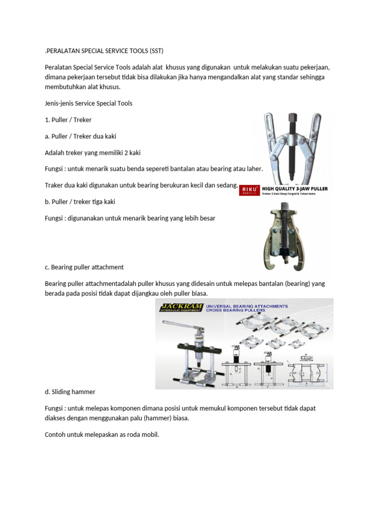 Peralatan Special Service Tools adalah alat khusus yang digunakan untuk melakukan suatu pekerjaan,