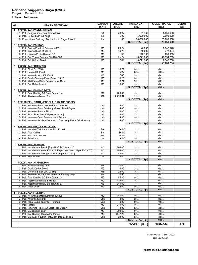 Rencana Anggaran Biaya (RAB)