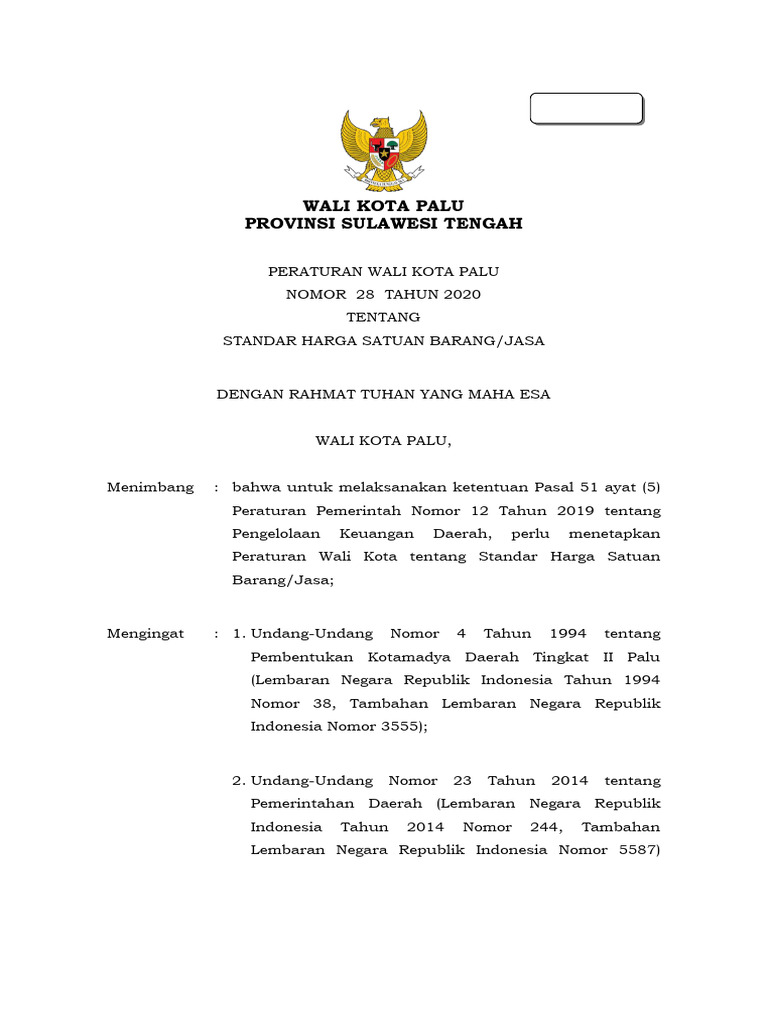 Peraturan Wali Kota tentang Standar Harga Satuan
