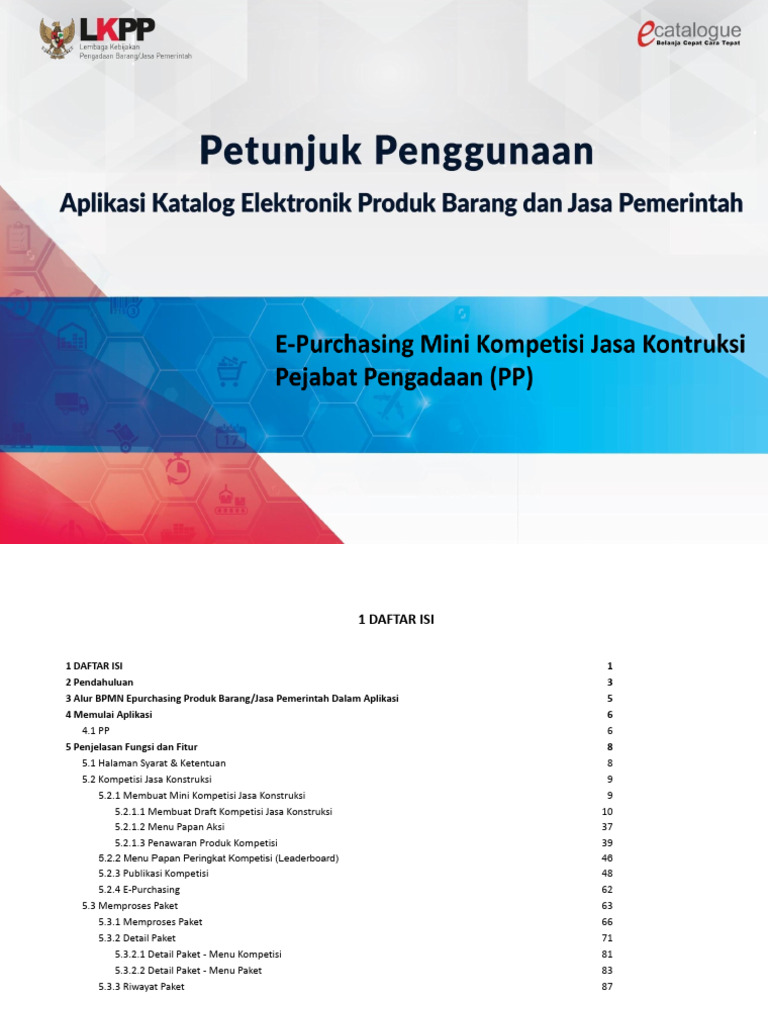 beberapa bagian, tidak lagi sesuai dengan versi Katalog Elektronik produk barang/jasa Pemerintah yang sedang digunakan. Jika Anda