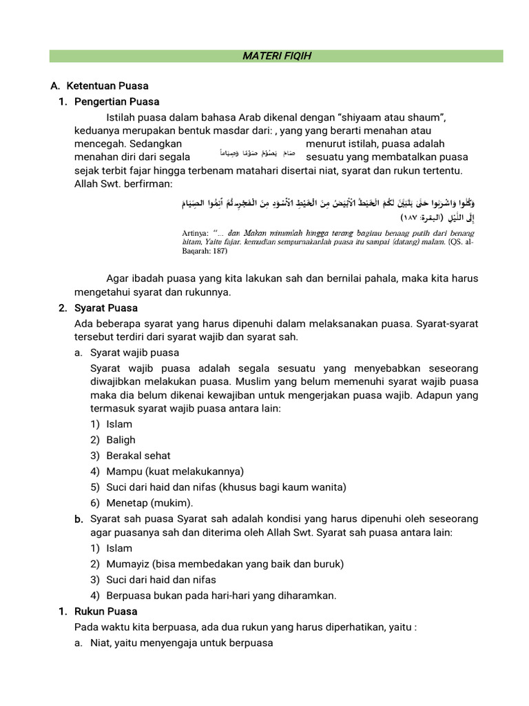 agar puasanya sah dan diterima oleh Allah Swt. Syarat sah puasa antara lain: