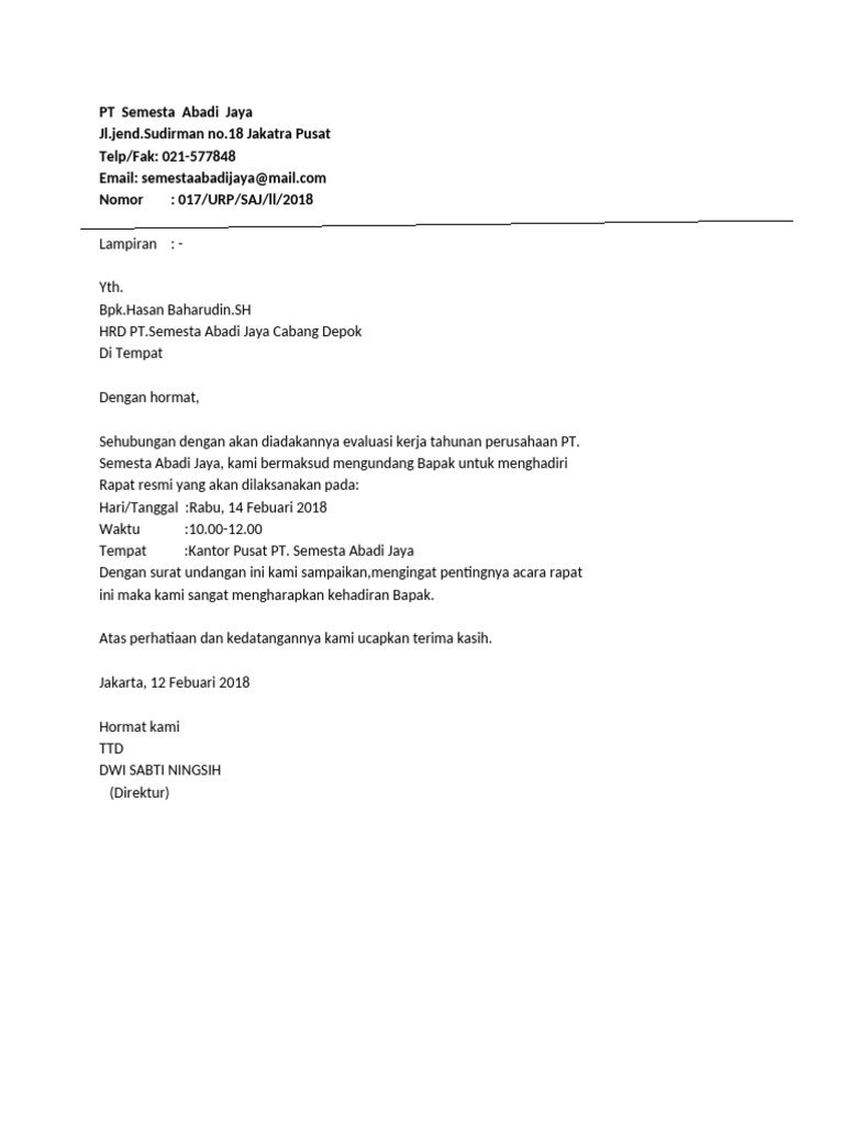 Dengan surat undangan ini kami sampaikan,mengingat pentingnya acara rapat